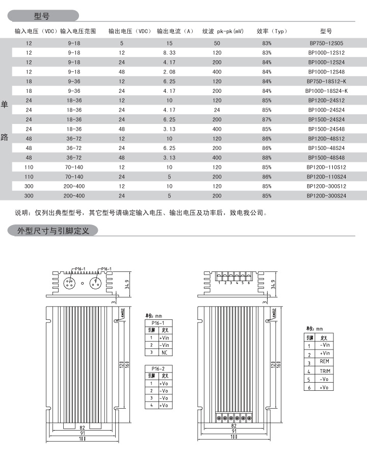 功率:75-150W 輸入電壓:9-18VDC 18-36VDC 36-72VDC 9-36VDC 70-140VDC 200-400VDC 輸出路數(shù):單路 外形尺寸:160*100*35mm 安裝方式:一體式